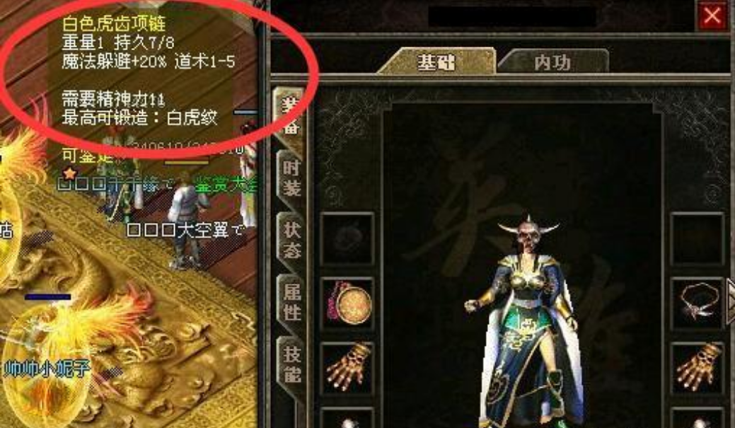 1:如图所示,这条灯笼链拥有5点的幸运值,要知道运九套只需要幸运值达到九点即可满足运九刀刀最大攻击的条件了,而这件项链就有5点幸运,等于玩家的武器只需要喝幸运达到4点即可,这在复古版本时期简直就是神器,因为当时的祝福油价格很高,一瓶就是上百的元宝,这么一件运5项链可以给玩家省多少喝祝福油的马内啊!而魔法躲避也增加了百分之十,虽然魔法躲避在传奇当中十分鸡肋,但是属性加的多总没错。